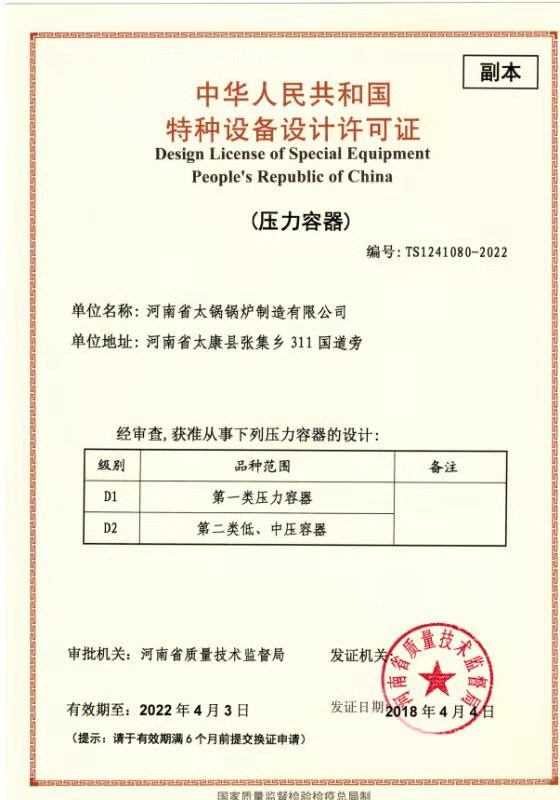 河南省太鍋鍋爐制造有限公司(原河南省太康鍋爐廠始建于1976年)始建于70年代初,經(jīng)40多年的艱辛探索,靠科技興業(yè),走科學(xué)管理之路,現(xiàn)已發(fā)展成為承接制造、安裝、設(shè)計(jì)大、中型供熱系統(tǒng),生產(chǎn):SZS燃油燃?xì)庹羝仩t、燃煤蒸汽鍋爐、燃油鍋爐、燃?xì)忮仩t、電加熱鍋爐、生物質(zhì)鍋爐、茶水鍋爐、有機(jī)熱載體鍋爐、熱風(fēng)鍋爐,蒸壓釜、燃油蒸汽鍋爐、燃?xì)庹羝仩t、燃油熱水鍋爐、燃?xì)鉄崴仩t并承擔(dān)安裝120噸熱水鍋爐、蒸汽鍋爐,生物質(zhì)鍋爐,加工制造一、二類蒸壓釜、壓力容器,化工機(jī)械的省一級**企業(yè)。